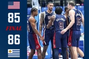 体育资讯8月25日讯 男篮美洲杯小组赛,美国男篮85-86不敌乌拉圭男篮。