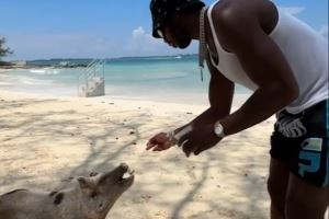视频当中,希尔德戴着墨镜身穿度假装,抱着宠物猪并说道:“它们很喜欢我呀。”随后,希尔德还进行了简单的投喂。