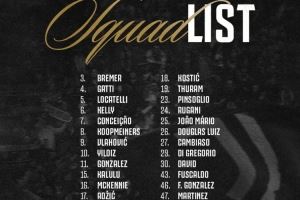 3-布雷默、4-加蒂、5-洛卡特利、6-凯利、7-小孔塞桑、8-库普梅纳斯、9-弗拉霍维奇、10-伊尔迪兹、11-冈萨雷斯、15-卡卢卢、16-麦肯尼、17-阿季奇、18-科斯蒂奇、19-K-图拉姆、23-平索里奥、24-鲁加尼、25-若昂-马里奥、26-道格拉斯-路易斯、27-坎比亚索、29-迪格雷戈里奥、30-戴维、43-福斯卡尔多、46-F-冈萨雷斯、47-马丁内斯