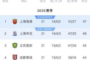 中超第21轮过后,中超榜首易主,上海海港以1分微弱优势领跑积分榜,身后上海申花、北京国安、成都蓉城虎视眈眈,中超冠军之争变化莫测!